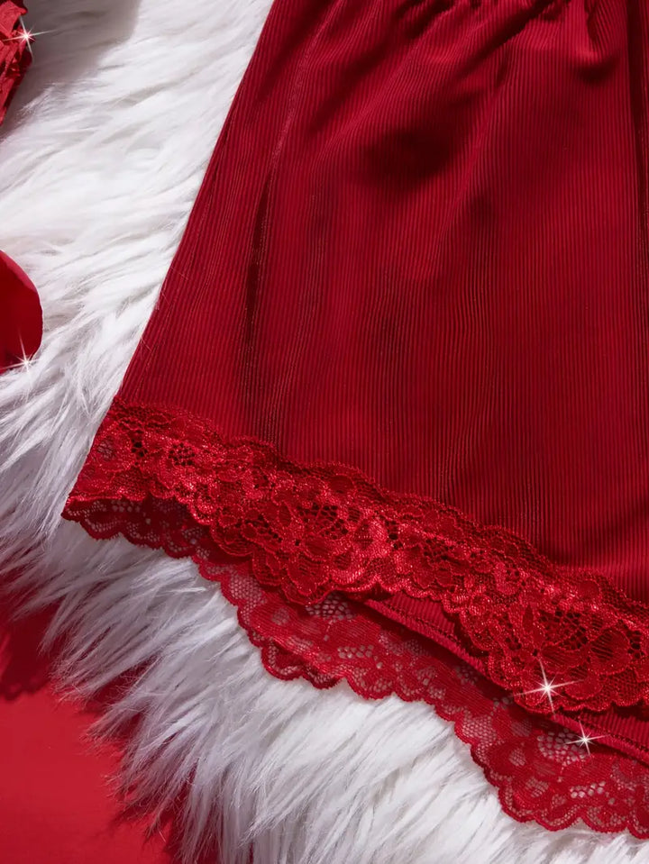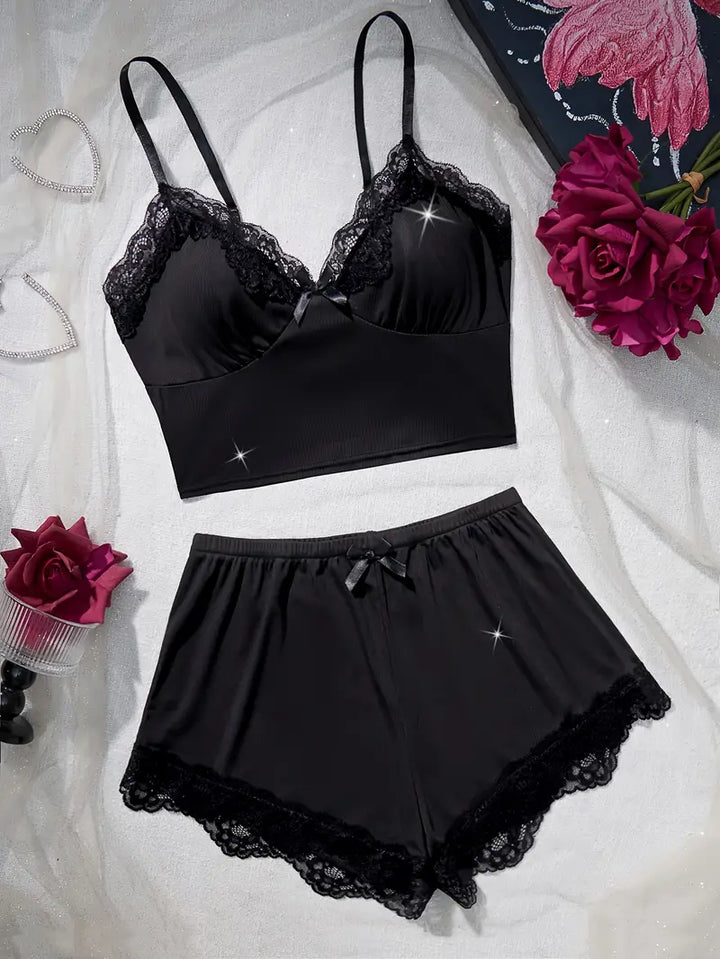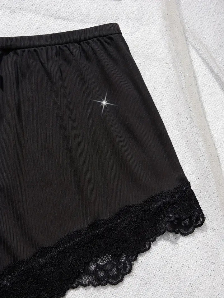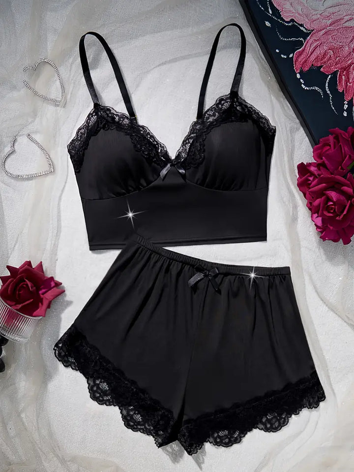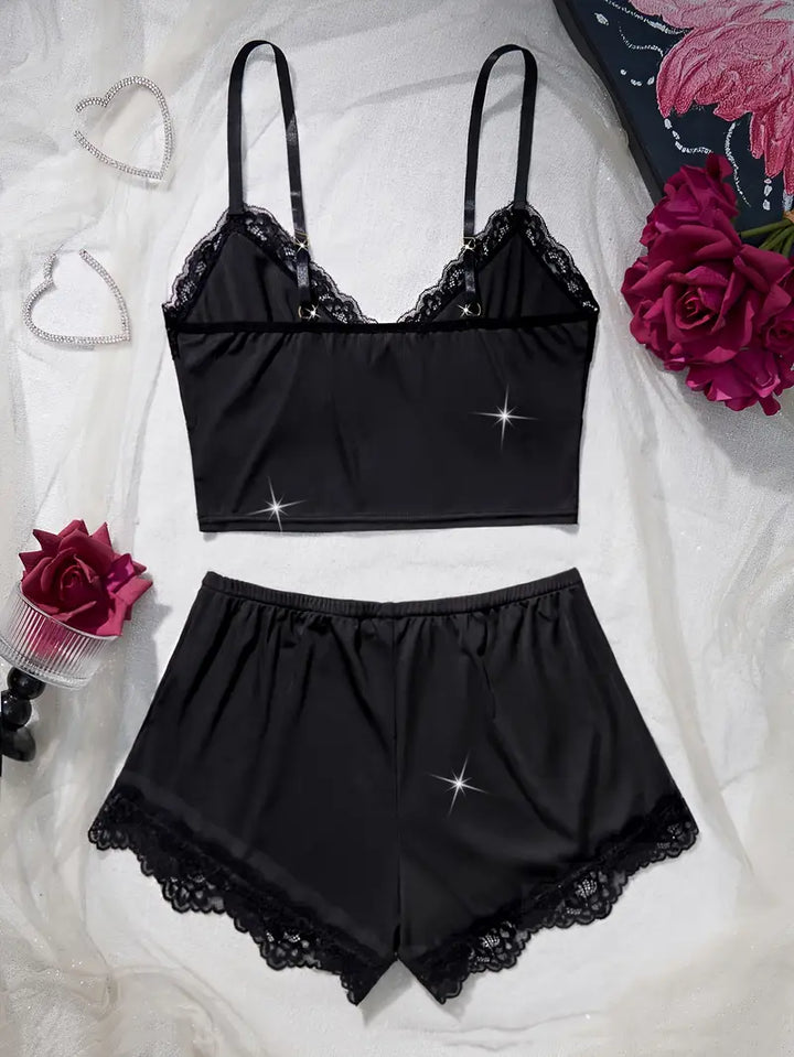 Women’s Sexy Lace Pajama Set – Halter Crop & Stretch Shorts